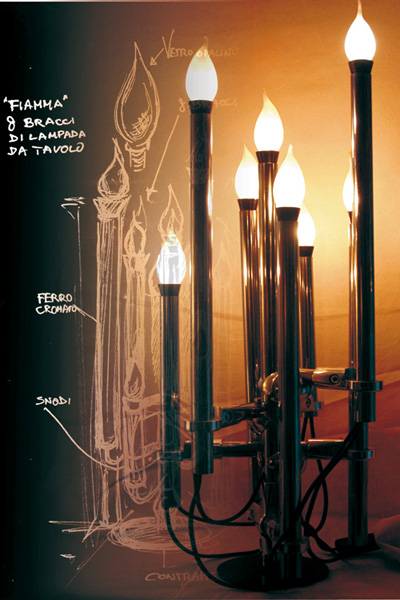 Lampada multibracci, ferro cromato, lampadine artigianali