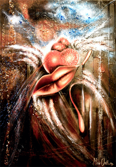 Un cuore aperto al paradiso trasforma un bacio in arte.