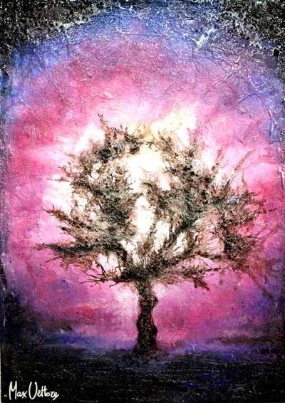 L'albero di un tramonto fantastico, solo la sua solitudine permette il dominio sulla sua costante crescita, nel paesaggio e sul terreno che lo fondamenta.